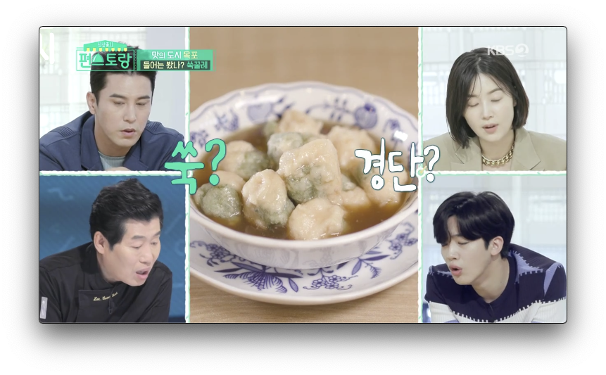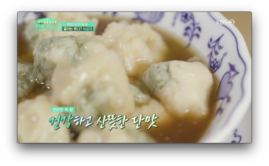편스토랑에서 맛의 도시 목포에 가서 목포 향토음식은 쑥꿀레를 소개하였습니다. 윤형빈님이 단골 느낌으로 늘 먹던 거로 부탁드릴게요 라고 이야기를 하고 있는데요 쑥꿀레 저는 처음 들어보는 음식이였습니다.