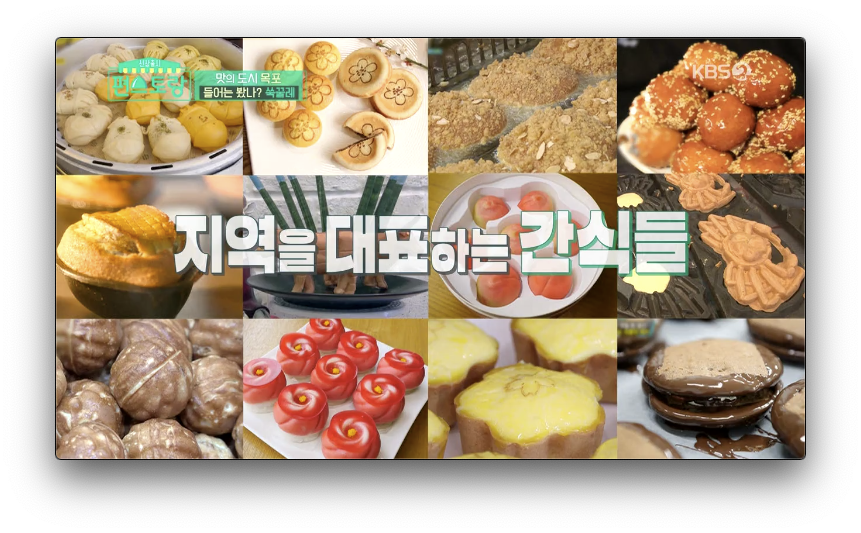 이렇게 지역을 대표하는 간식들이 소개되었는데요 추가적으로 그림처럼 대개빵과 전복빵 전주 초코파이 더 있지만 편스토랑에서 소개된 것들만 이야기하겠습니다.