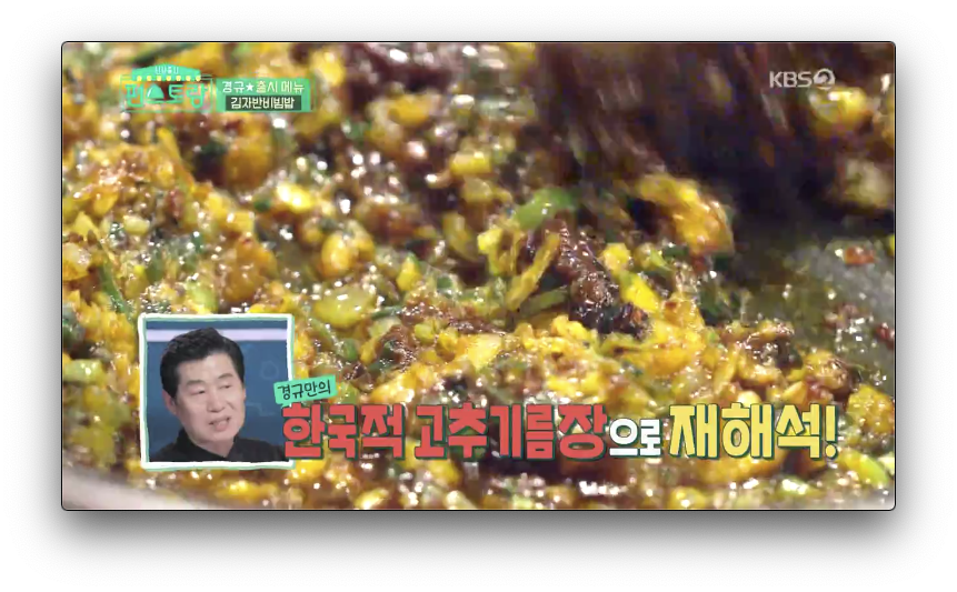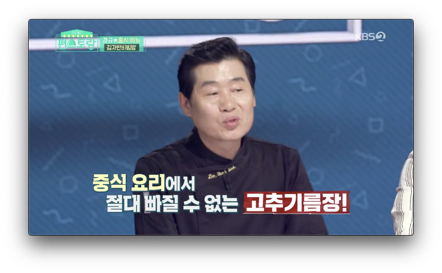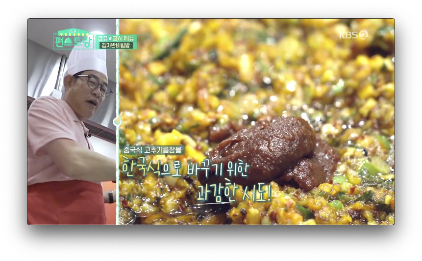 그리고 이경규님의 꿀팁 !! 이경규의 결정타 바로 고추장입니다!! 고추장으로 중식 라유장을 한국식으로 탈바꿈시킬 재료이지요 고추장을 넣는 과감한 시도를 했다고 소개가 되었습니다.