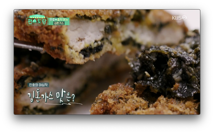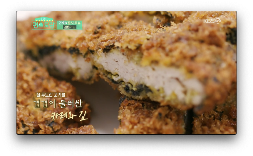 편스토랑에 장민호님의 도전 바로 김돈까스 입니다. 이번 편스토랑의 주제는 바로 김입니다. 김을 가지고 요리를 해야하는데요 장민호님은 누구나 좋아하는 돈까스에 김을 넣어서 김돈까스를 만들었다고 하는데요 김돈까스 레시피와 조리 과정을 같이 보겠습니다.