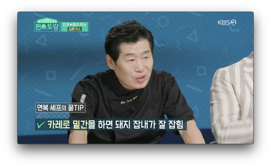 돈까스에 카페로 밑간을 하는 모습을 본 이연복 셰프님의 팁을 알려주셨는데요 카레로 밑간을 하면 되지 잡내가 잘 잡힌다고 합니다.