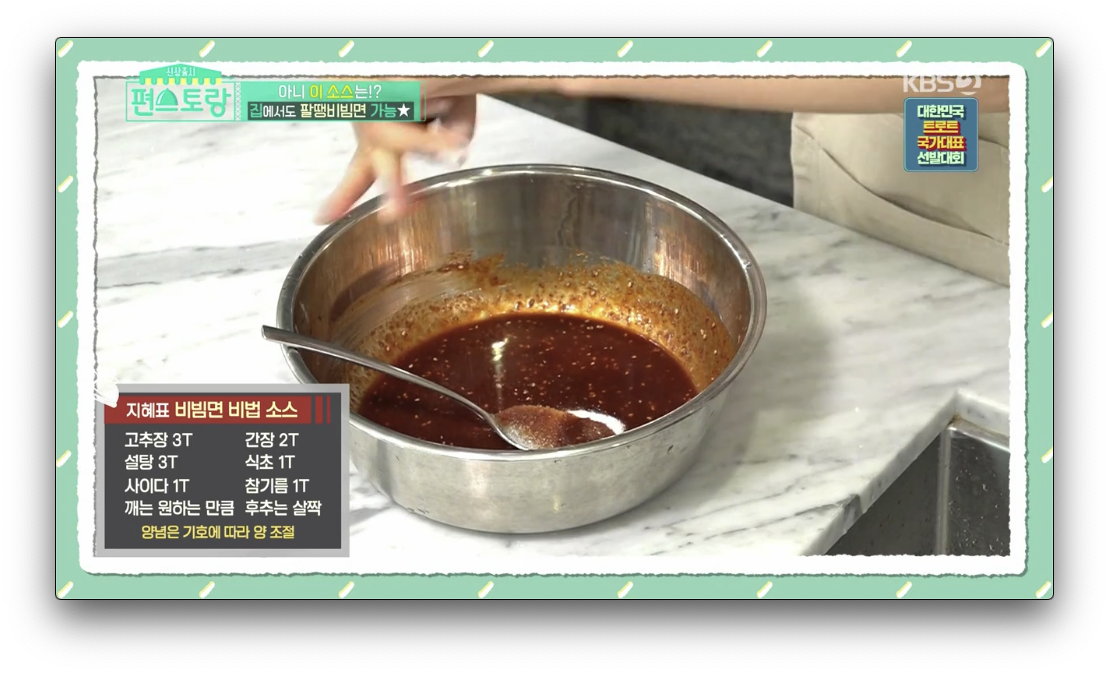 한지혜 만능비빔장 돔베수육레시피 팔도비빔면소스레시피 편스토랑 한지혜수육 한지혜비빔면 집에서쉽게만드는 비빔면