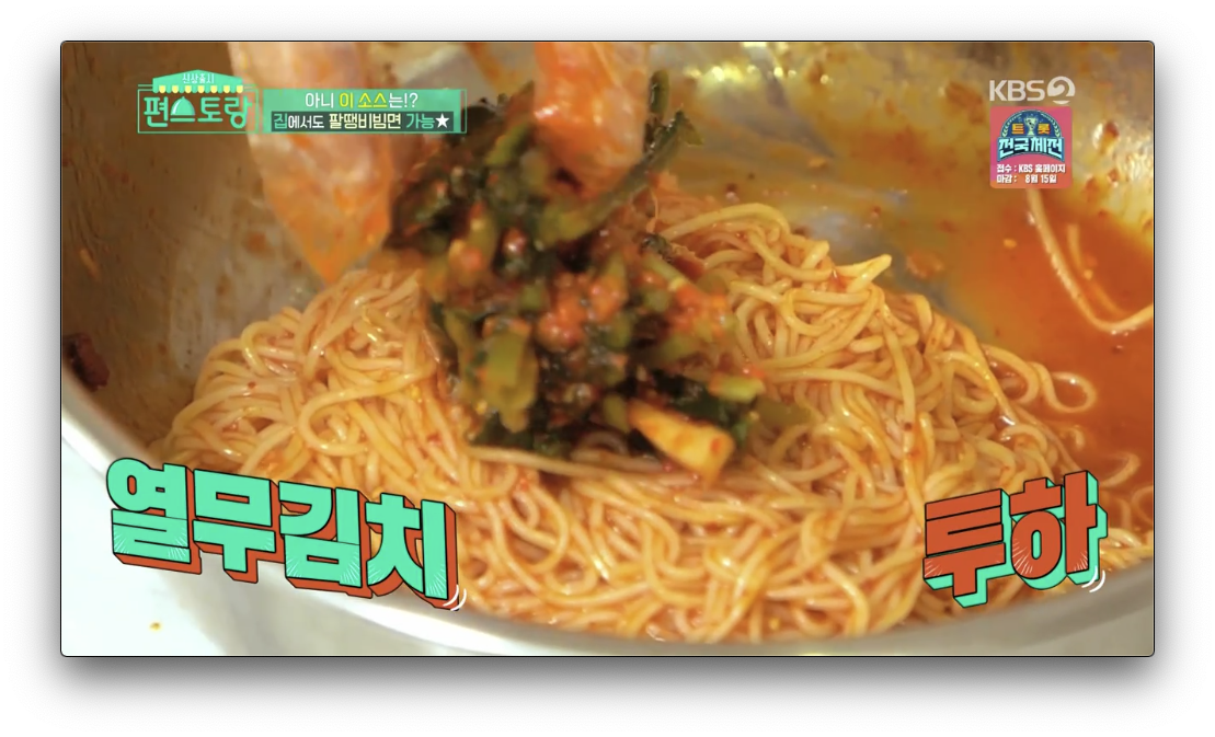 그리고 잘 익은 열무김치가 있으면 적당한 크기로 잘라서 비빔면에 넣어주시면 됩니다.
