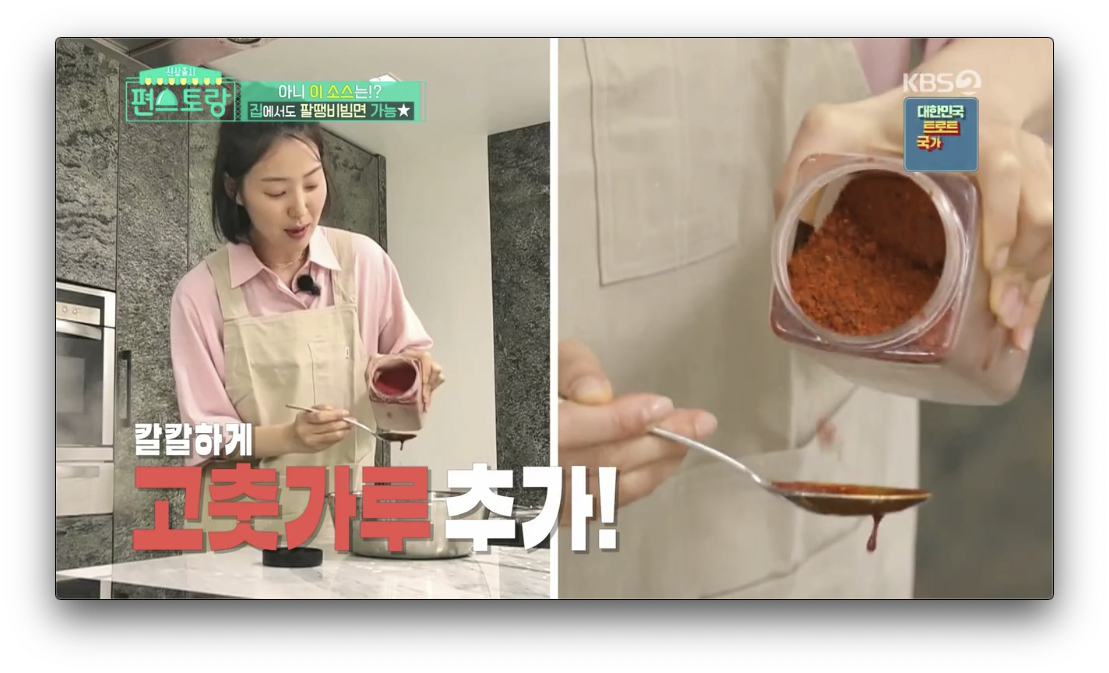 집에서 만든 소스의 더 나은 맛을 위해서 멈출수 없는 한지혜님입니다. 그래서 기호에 맞게 고춧가루를 넣어주시면 됩니다.