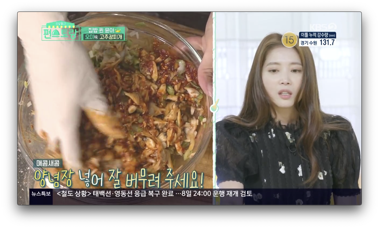 아버지가 좋아하는 바지락초무침이 소개되었습니다. 딸이 아버지를 위해 요리를 한다고 하니 아버지가 많이 좋아하십니다.