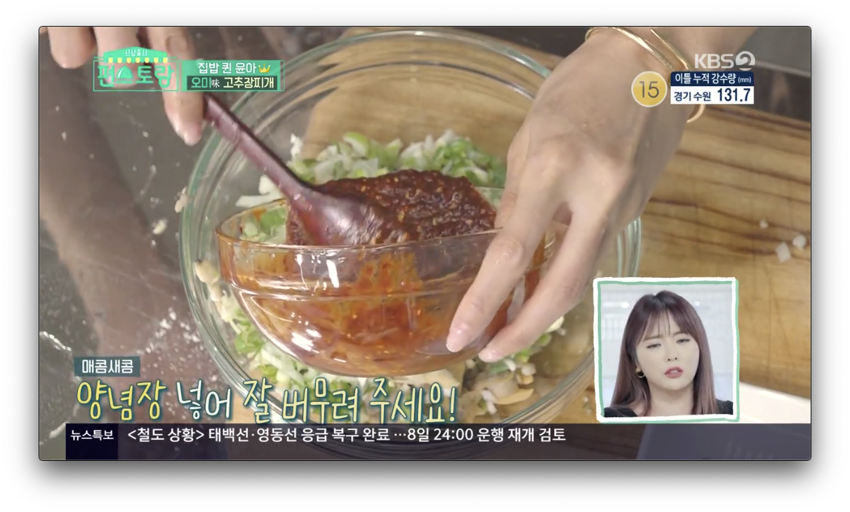 한지혜 치킨 양념 그리고 치밥 15분만에 만드는 치킨 퀵지혜 퀵치킨 편스토랑 한지혜치킨 (0) 2020.08.24 간단꽃게무침레시피 간단홍어무침레시피 홍진영꽃게무침 홍어무침 편스토랑 (0) 2020.08.23 오미고추장찌개 오윤아고추장찌개 편스토랑 집에서쉽게만드는고추장찌개 (0) 2020.08.22 집에서 만드는 수박모히토 그리고 수박라떼 오윤아수박음료 편스토랑 (0) 2020.08.22 직장인 최애 간식 믹스커피 스틱아이스크림 (0) 2020.08.19