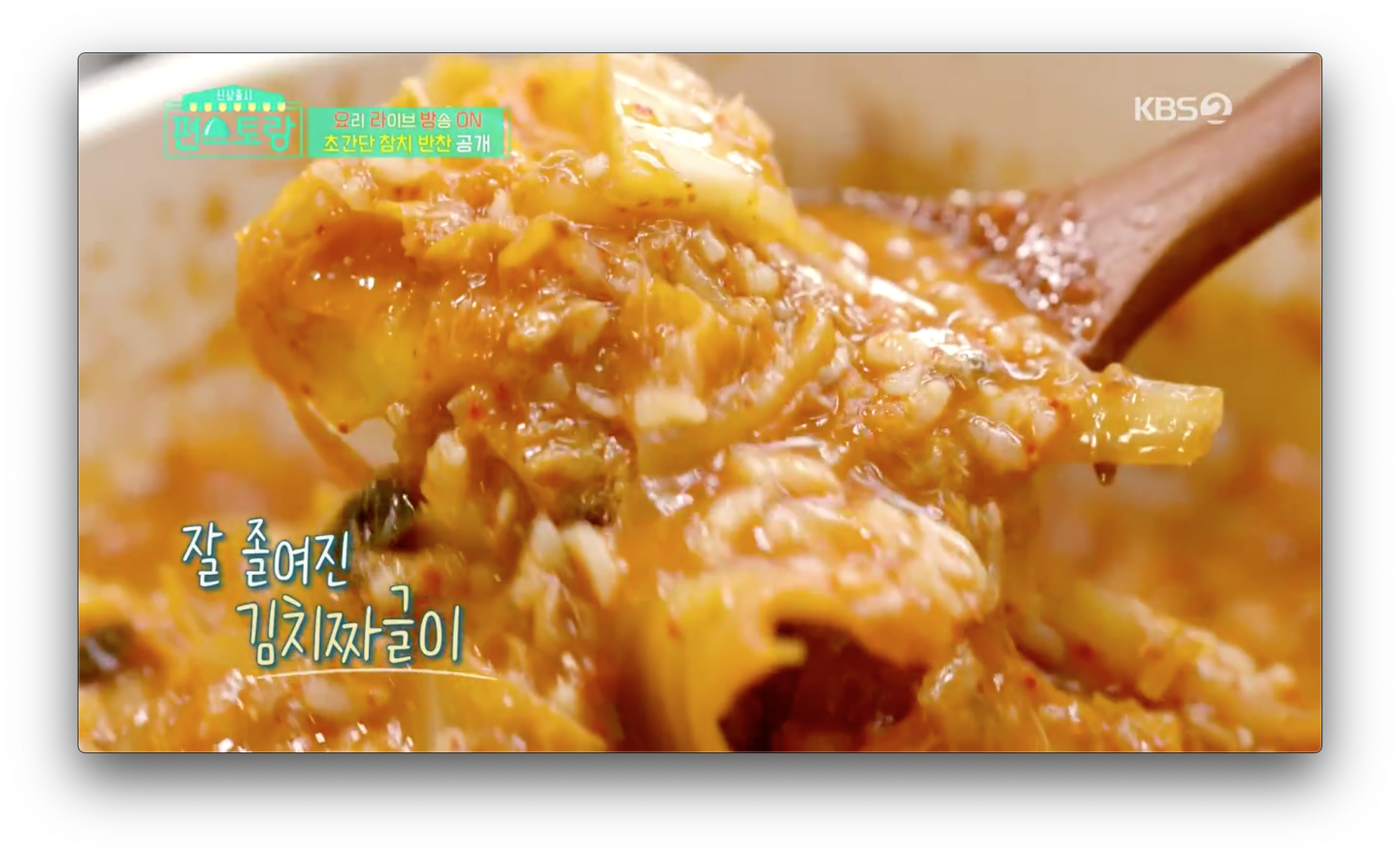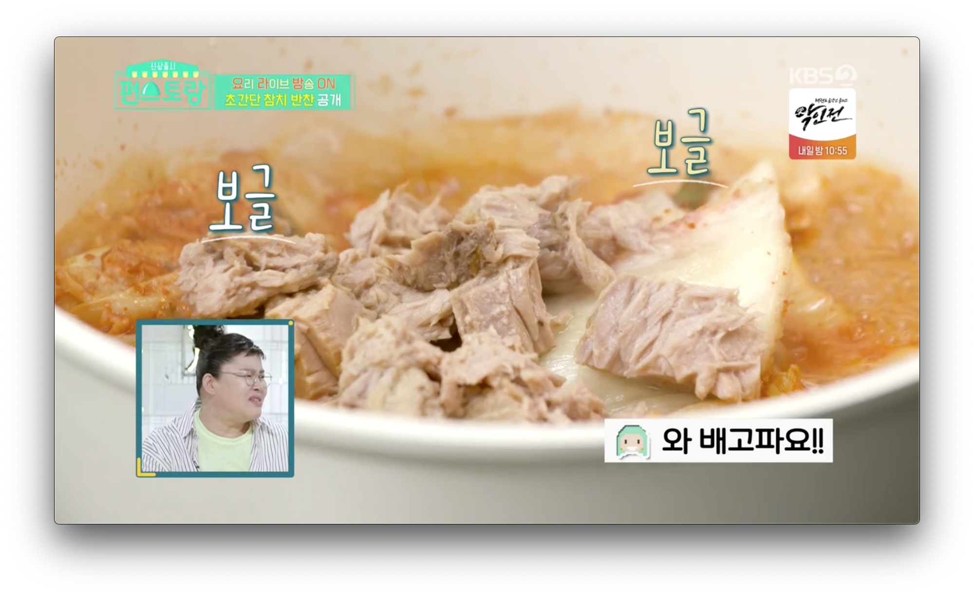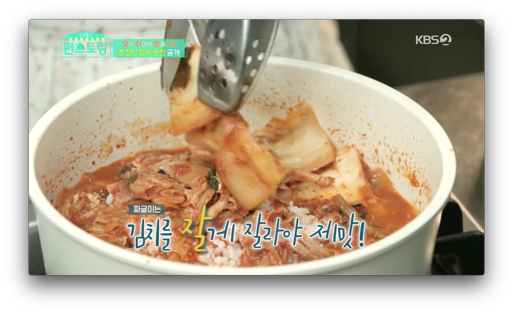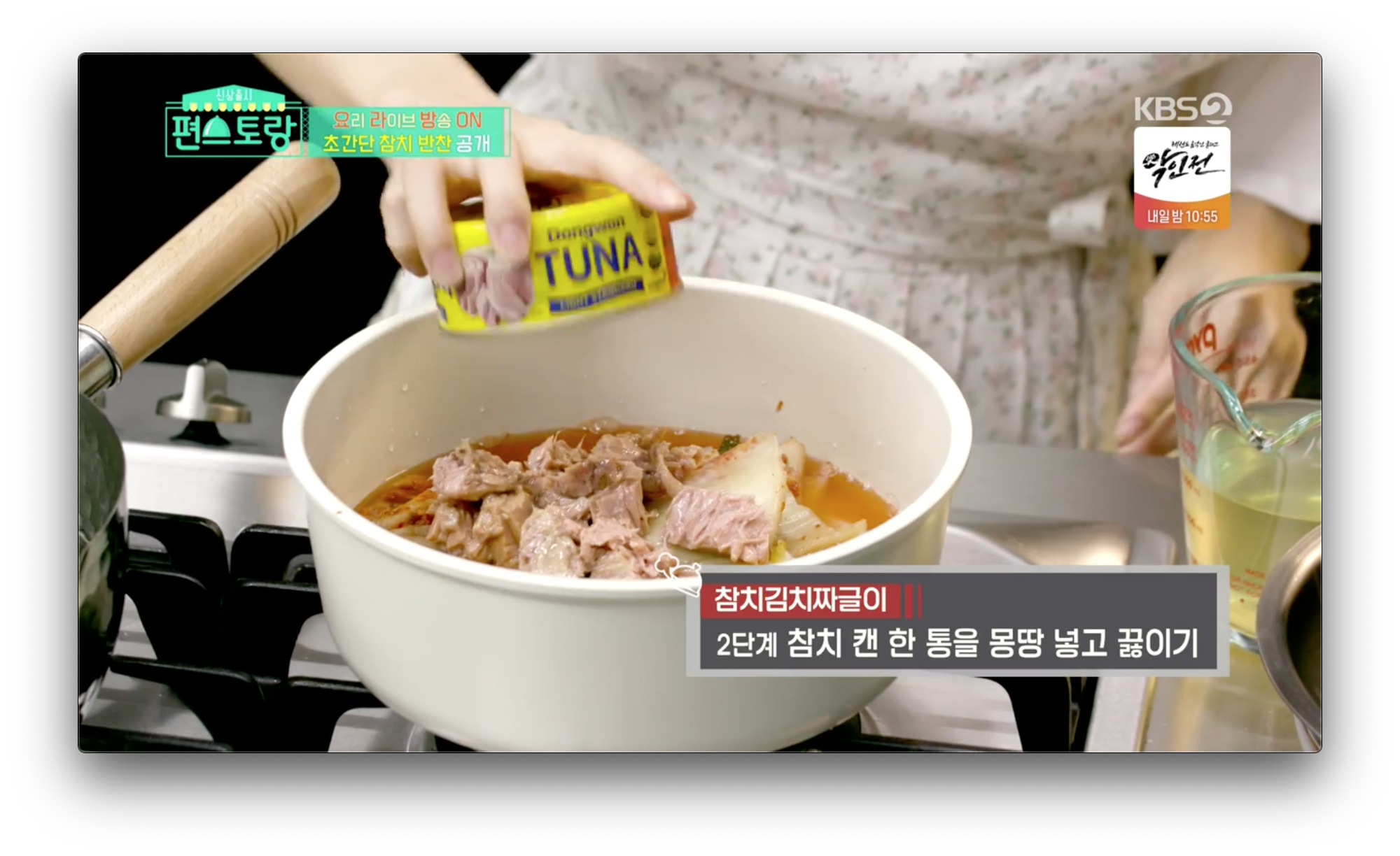 편스토랑에서 이정현님의 참치 캔 요리 첫번째 메뉴 바로!! 참치김치짜글이가 나왔습니다.
