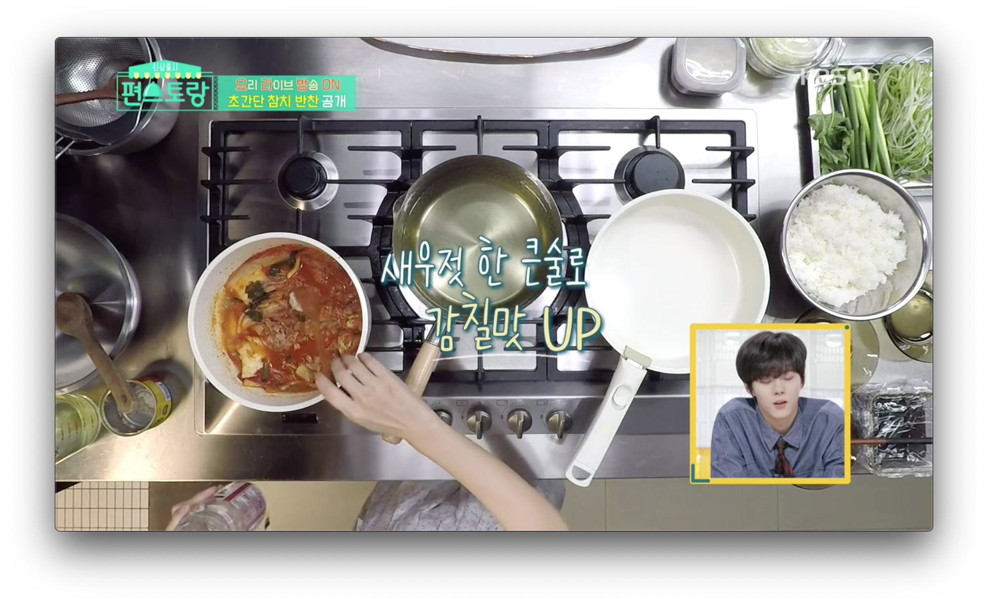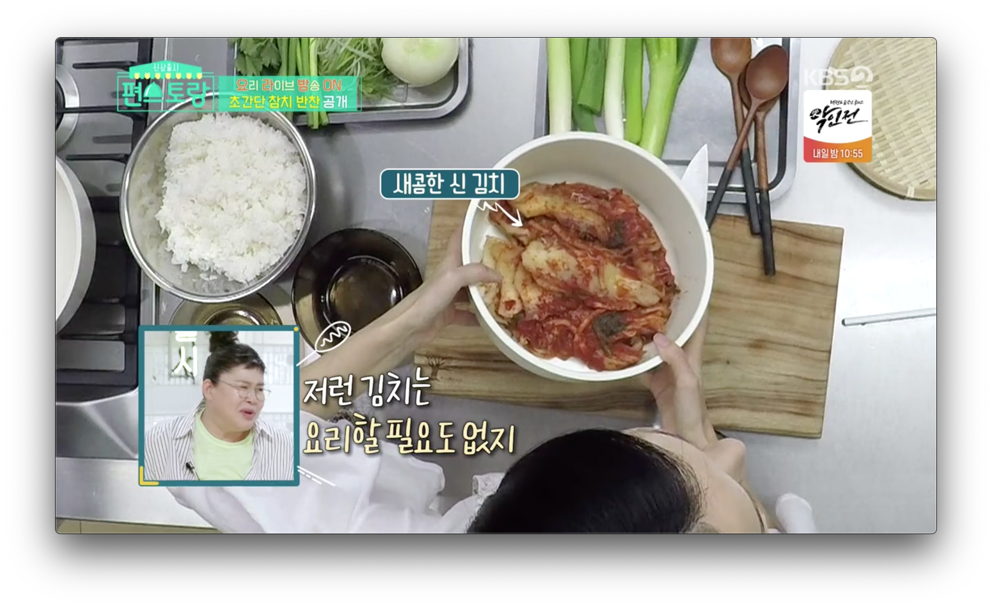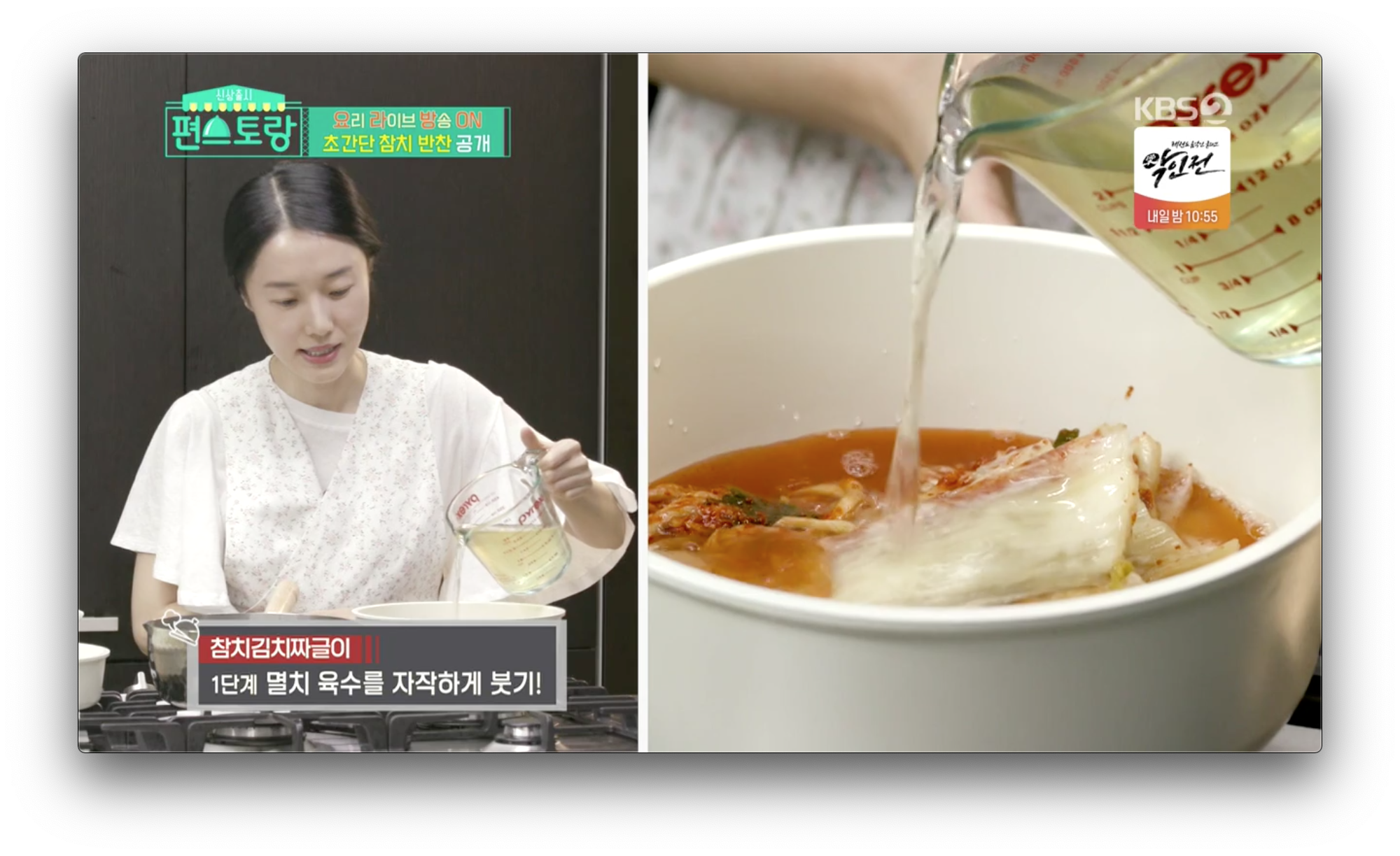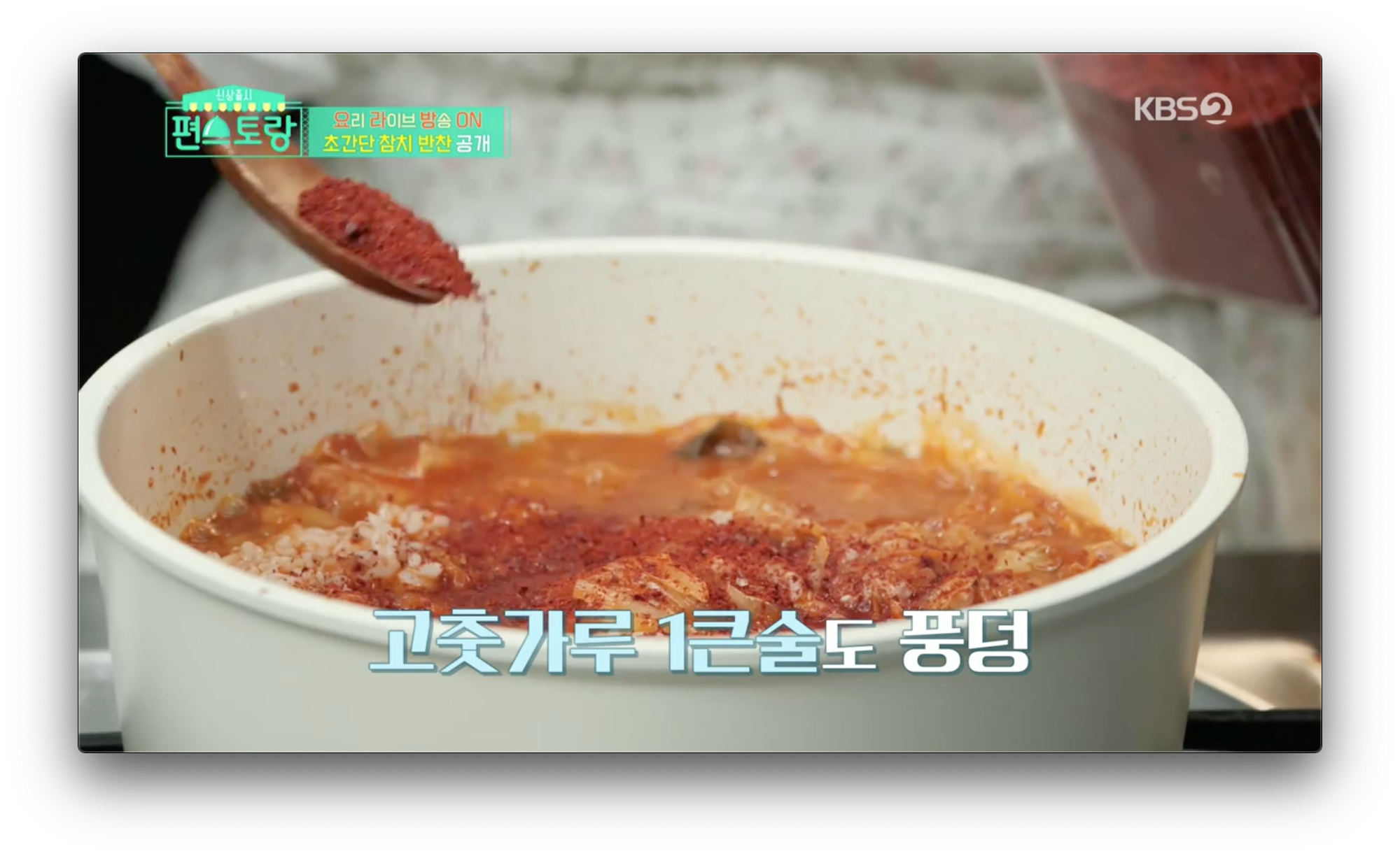편스토랑에서 이정현님의 참치 캔 요리 첫번째 메뉴 바로!! 참치김치짜글이가 나왔습니다.