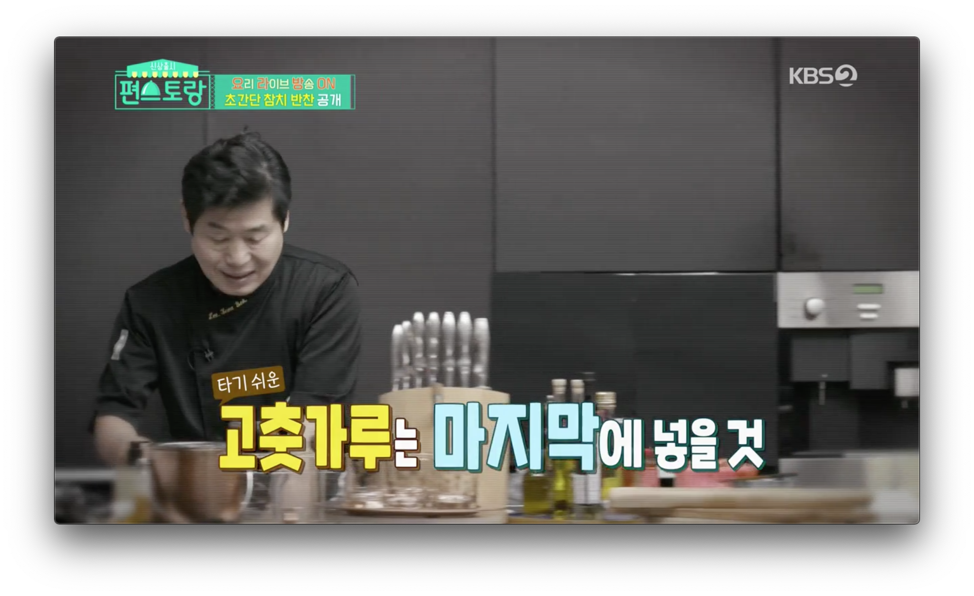 타기 쉬운 고춧가루는 마지막에 넣어주세요