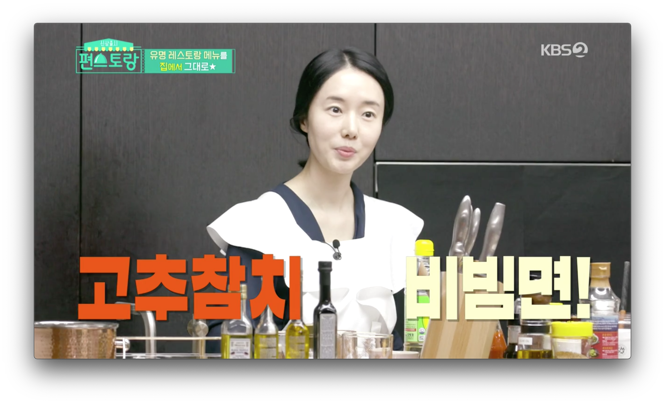 편스토랑에서 이번에 고추참치를 이용한 요리가 소개되었습니다 이정현님이 알려주는 고추참치 비빔면 같이 보겠습니다.
