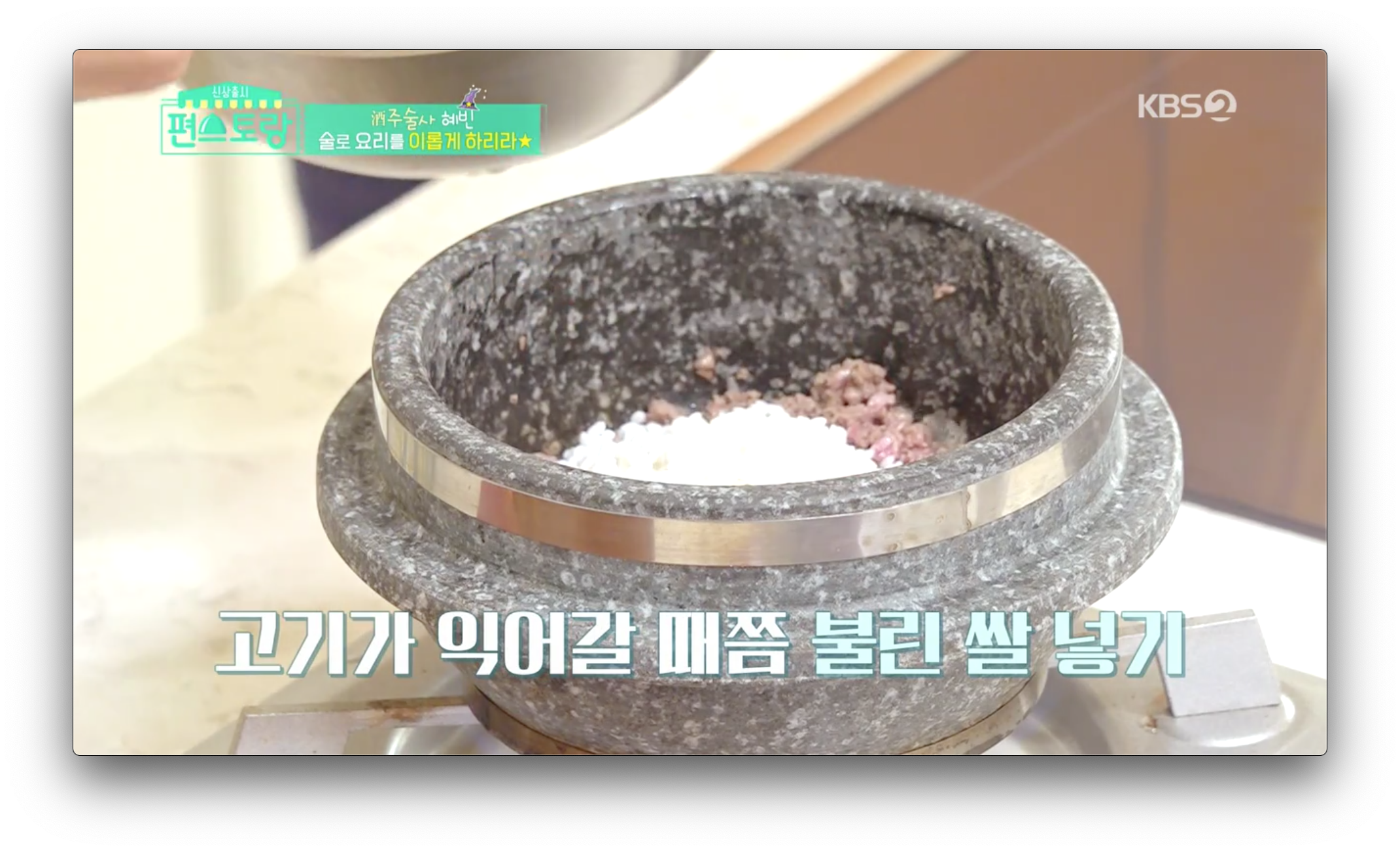 고기가 익어갈 때쯤 불린 쌀을 넣어주세요