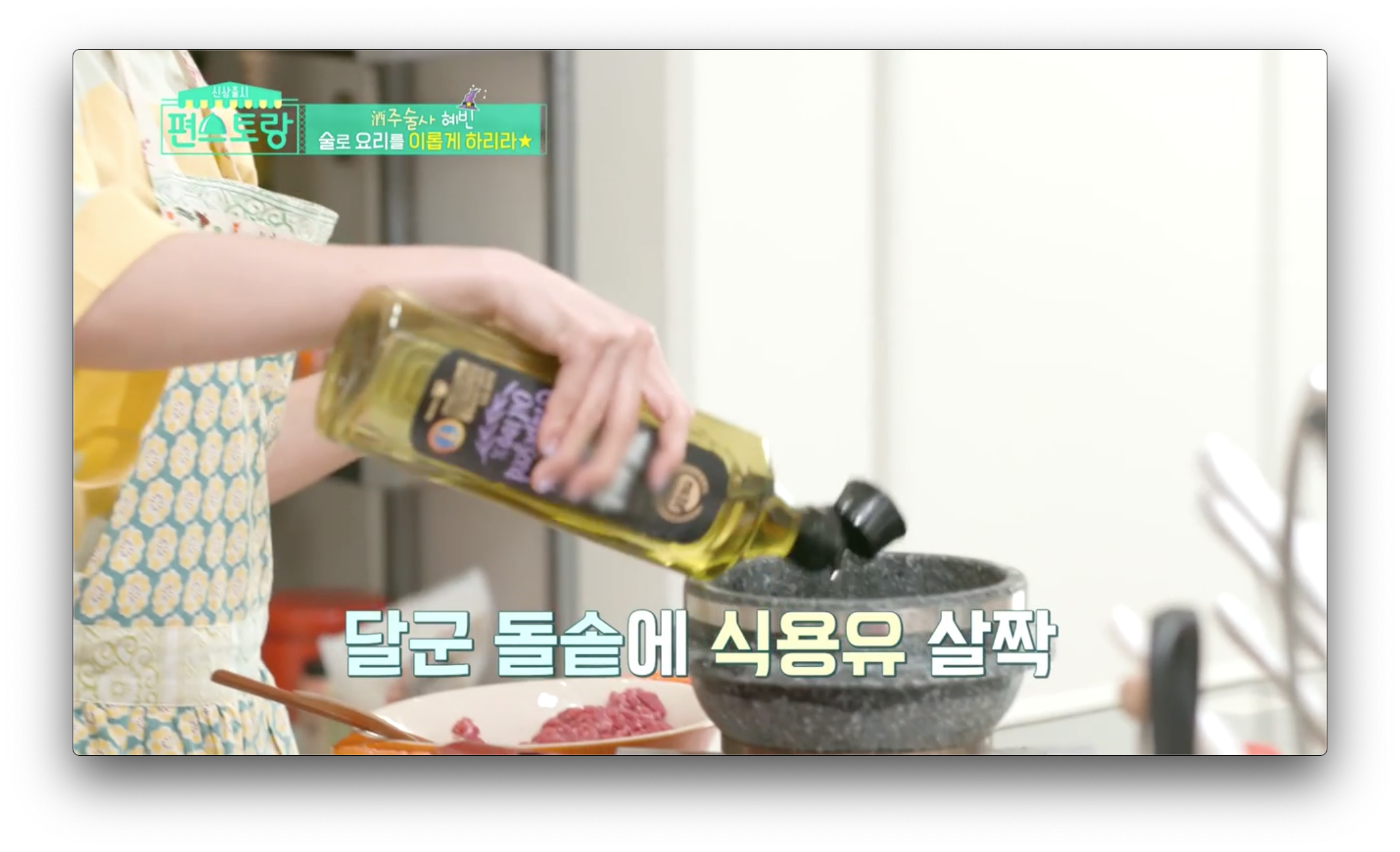 먼저 달군 돌솥에 식용유 살짝 넣어주세요