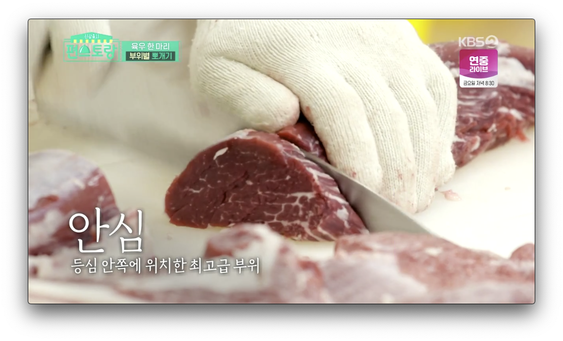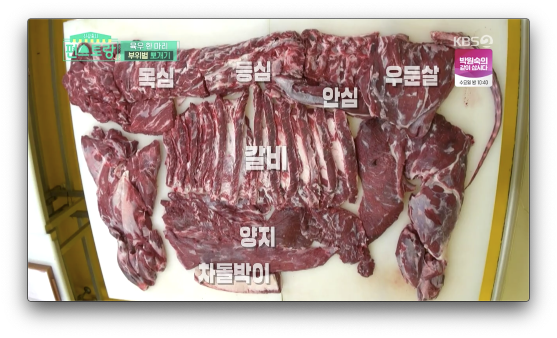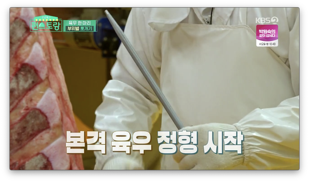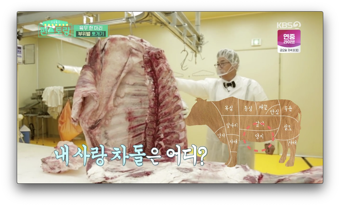 편스토랑에서 육우 반마리를 해체 하는 과정이 소개되었습니다. 소 부위별 손질 과정을 같이 보겠습니다.