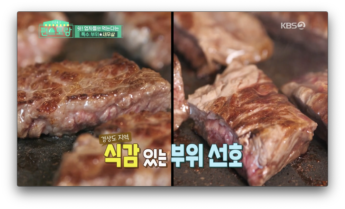 이경구님은 차돌박이 마니아라고 소개되면서 소의 양지 부분이 앞쪽에 위치하고 있습니다.